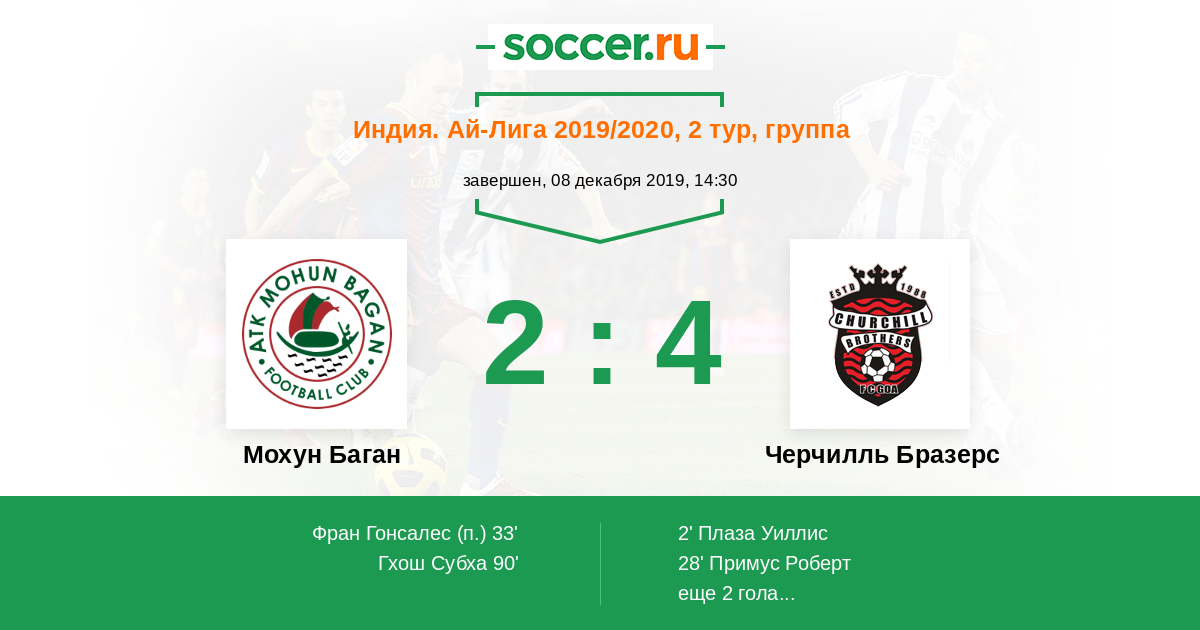 Протокол матча Мохун Баган против Черчилль Бразерс