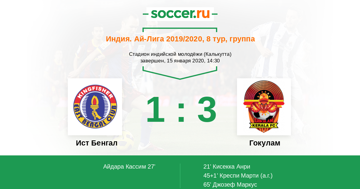 Протокол матча Ист Бенгал против Гокулам