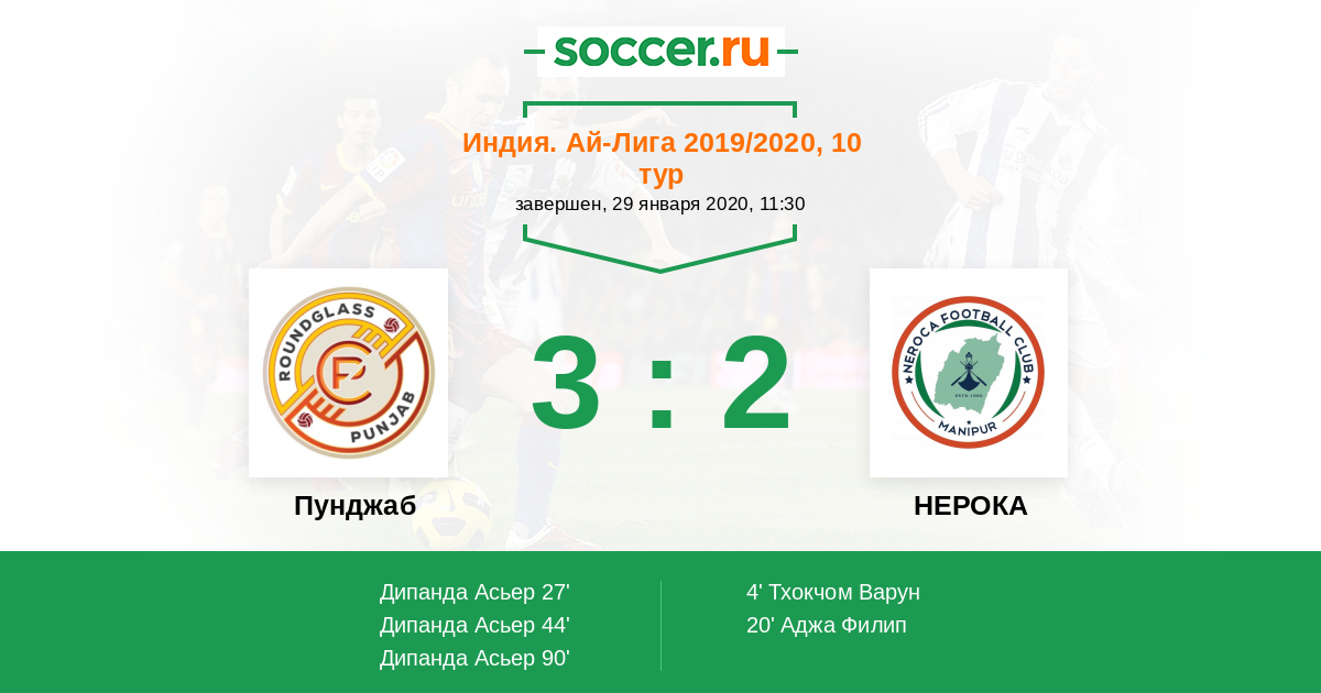 44' (2:2) Дипанда Асьер (29) (Прадхан Санджу (15))