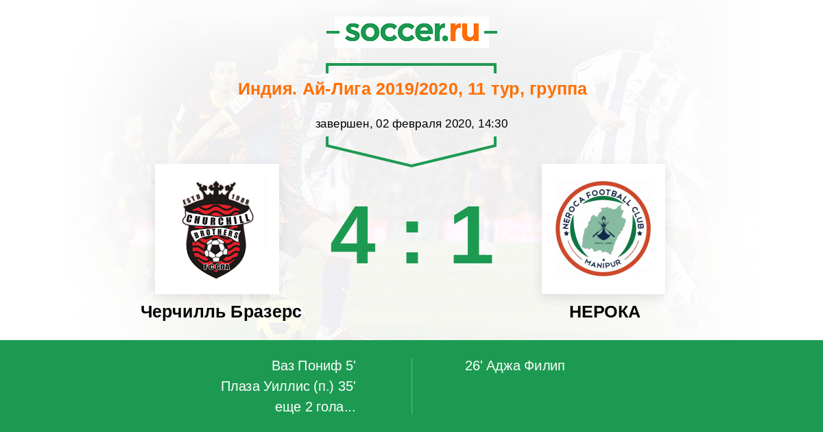 Протокол матча Черчилль Бразерс против НЕРОКА