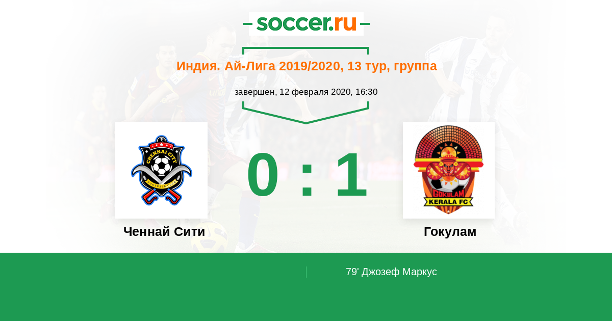 Протокол матча Ченнай Сити против Гокулам