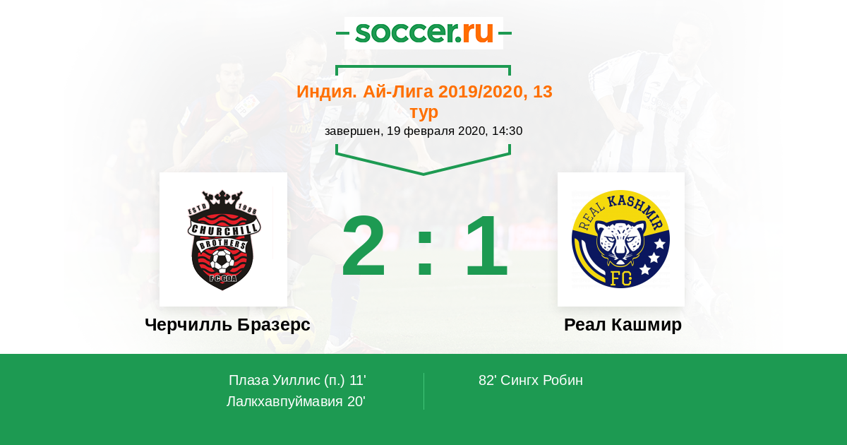 Протокол матча Черчилль Бразерс против Реал Кашмир
