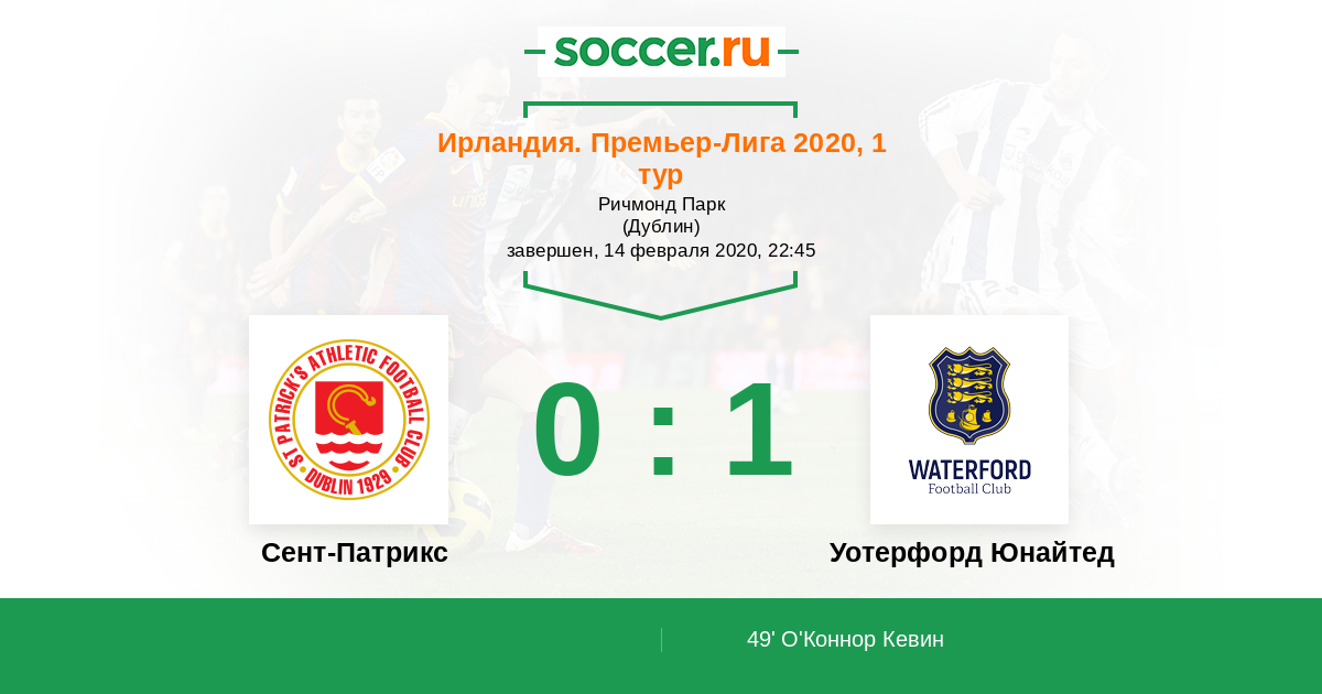 Протокол матча Сент-Патрикс против Уотерфорд Юнайтед