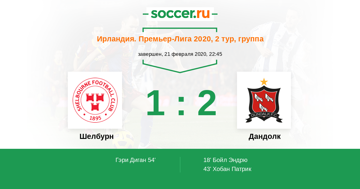 Протокол матча Шелбурн против Дандолк