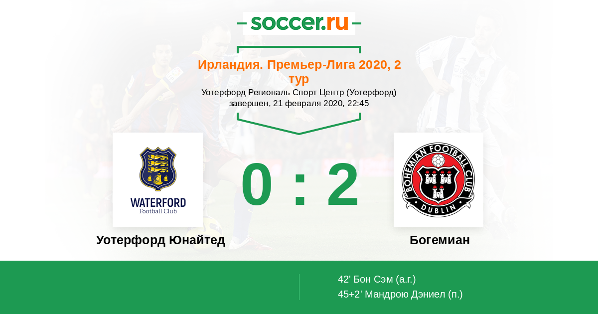 Протокол матча Уотерфорд Юнайтед против Богемиан