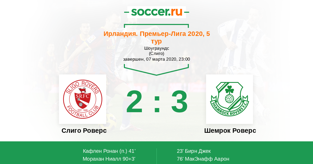 Протокол матча Слиго Роверс против Шемрок Роверс