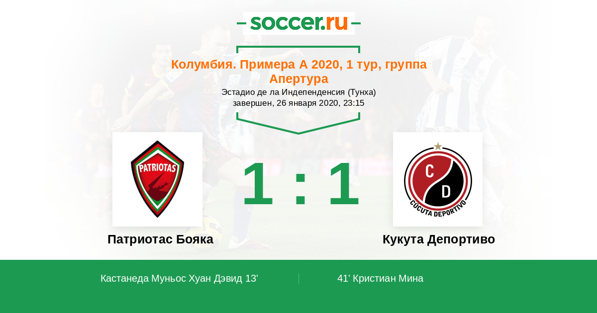 Протокол матча Патриотас Бояка против Кукута Депортиво