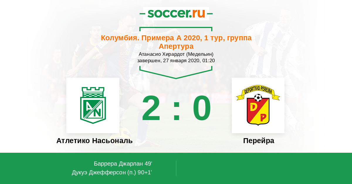 49' (1:0) Баррера Джарлан (7) (Паласиос Элибелтон (13))