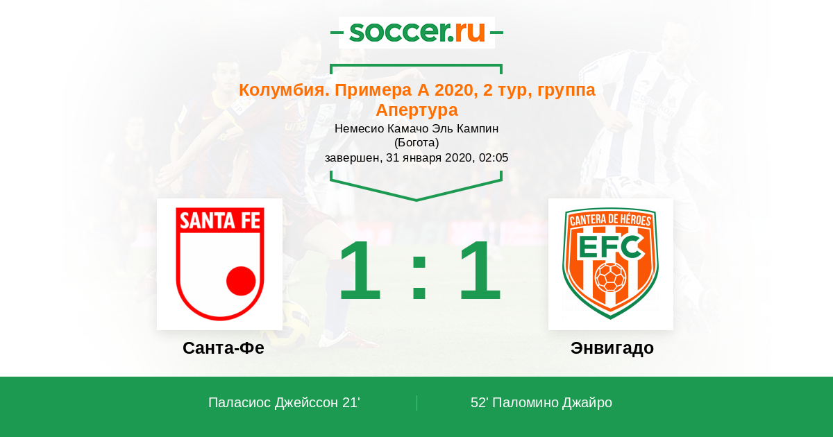 Протокол матча Санта-Фе против Энвигадо