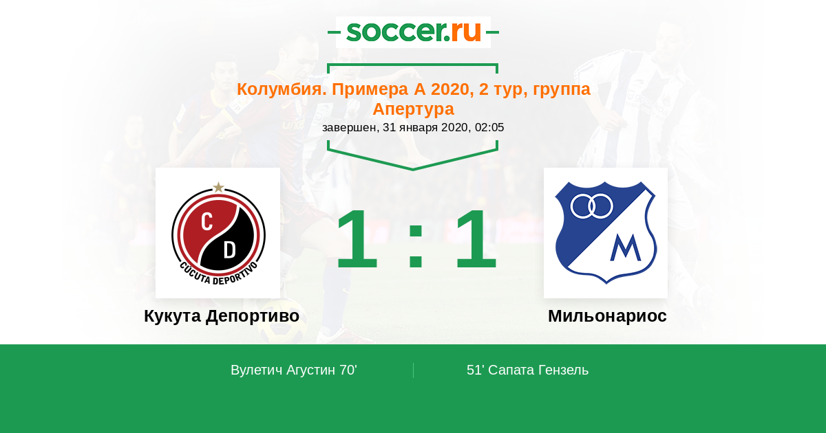 Протокол матча Кукута Депортиво против Мильонариос