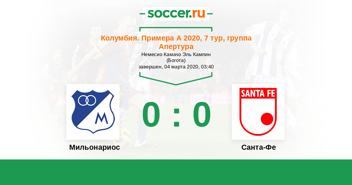 Протокол матча Мильонариос против Санта-Фе