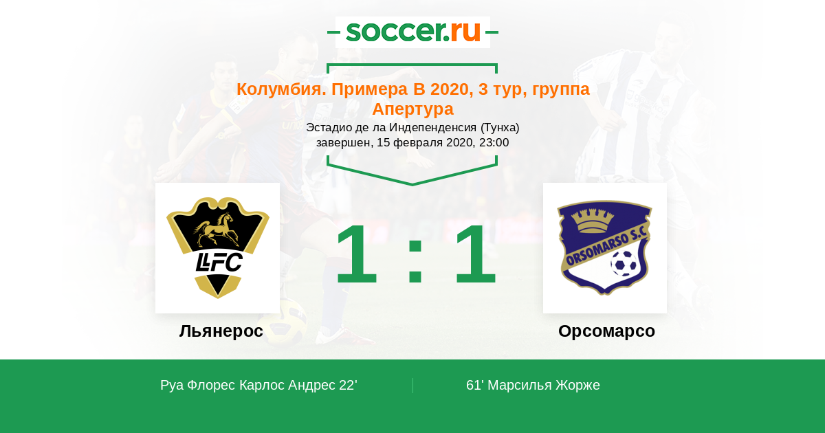 Протокол матча Льянерос против Орсомарсо