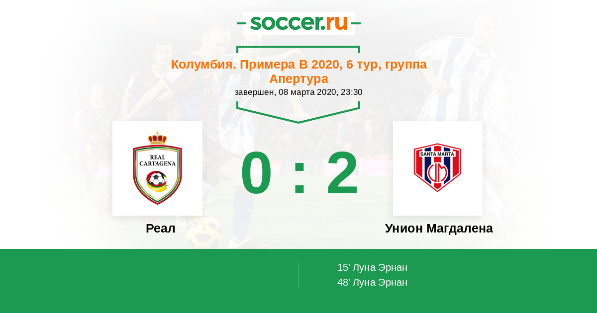Протокол матча Реал против Унион Магдалена