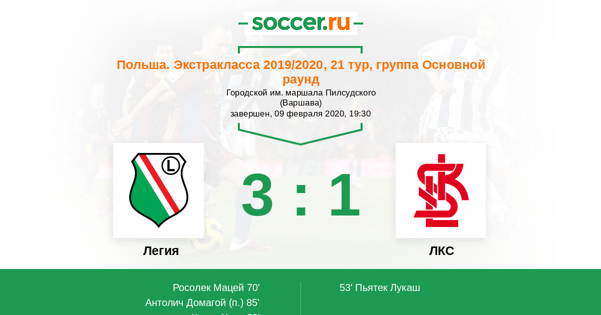 Протокол матча Легия против ЛКС