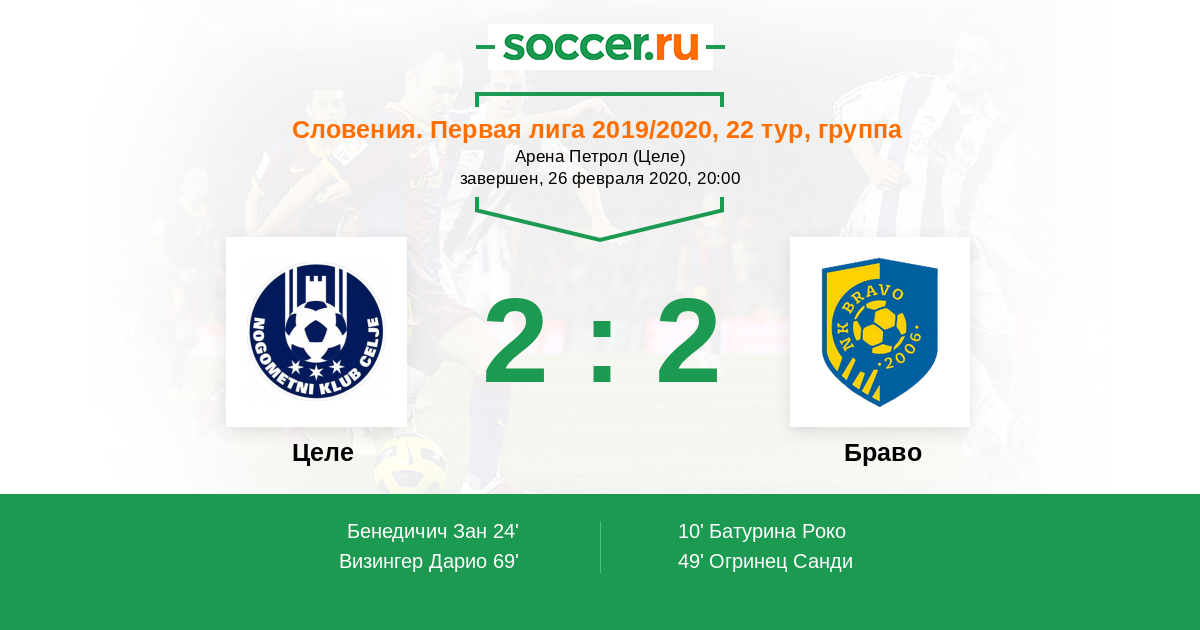 Протокол матча Целе против Браво