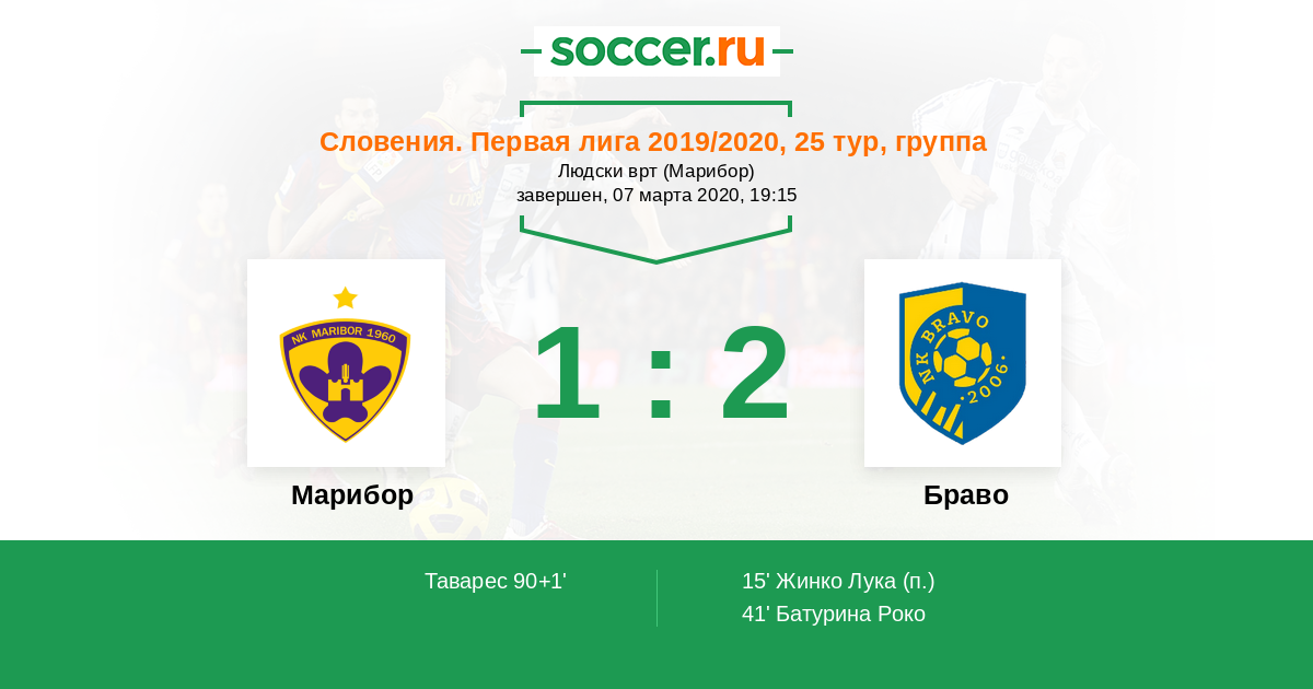 Протокол матча Марибор против Браво