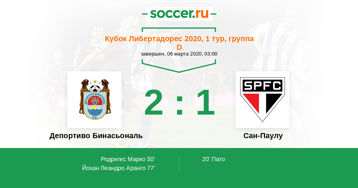 Протокол матча Депортиво Бинасьональ против Сан-Паулу