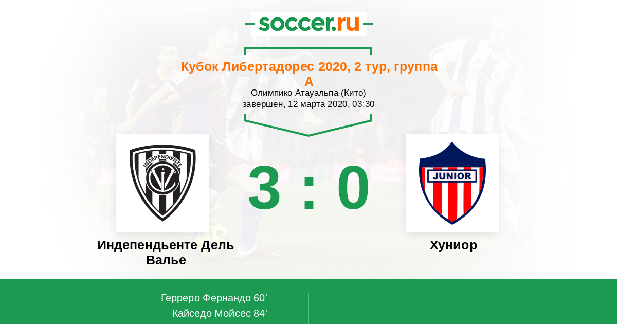 Протокол матча Индепендьенте Дель Валье против Хуниор