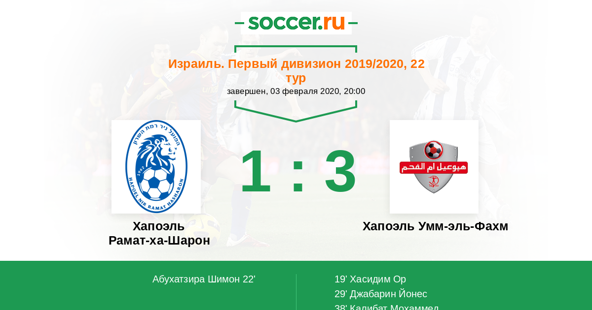 Протокол матча Хапоэль Рамат-ха-Шарон против Хапоэль Умм-эль-Фахм