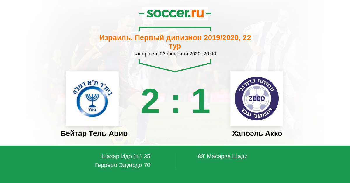 Протокол матча Бейтар Тель-Авив против Хапоэль Акко