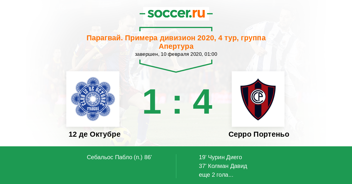 Протокол матча 12 де Октубре против Серро Портеньо