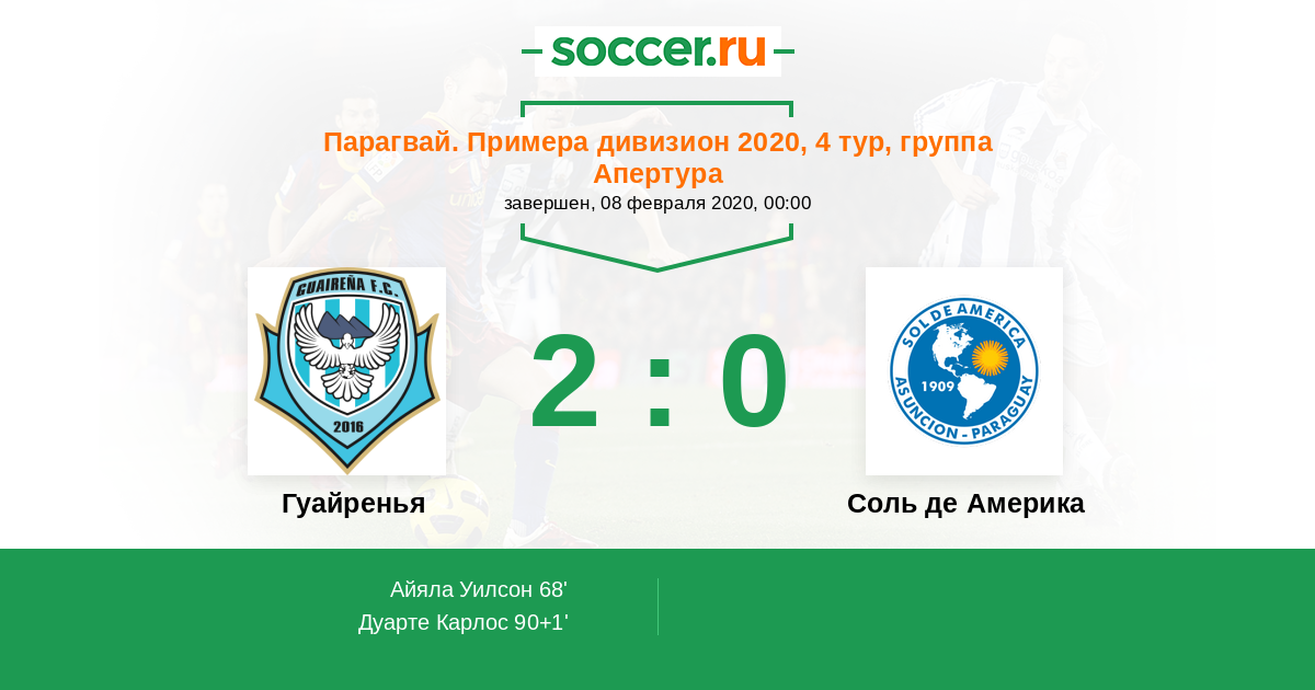 Протокол матча Гуайренья против Соль де Америка