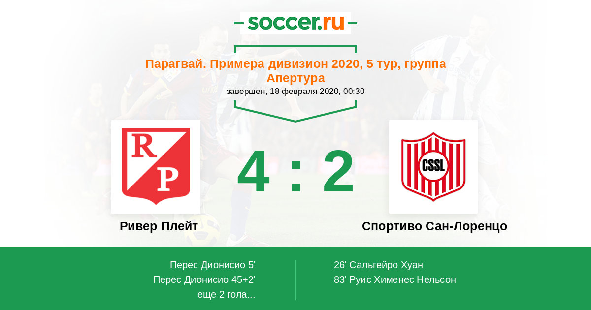 Протокол матча Ривер Плейт против Спортиво Сан-Лоренцо