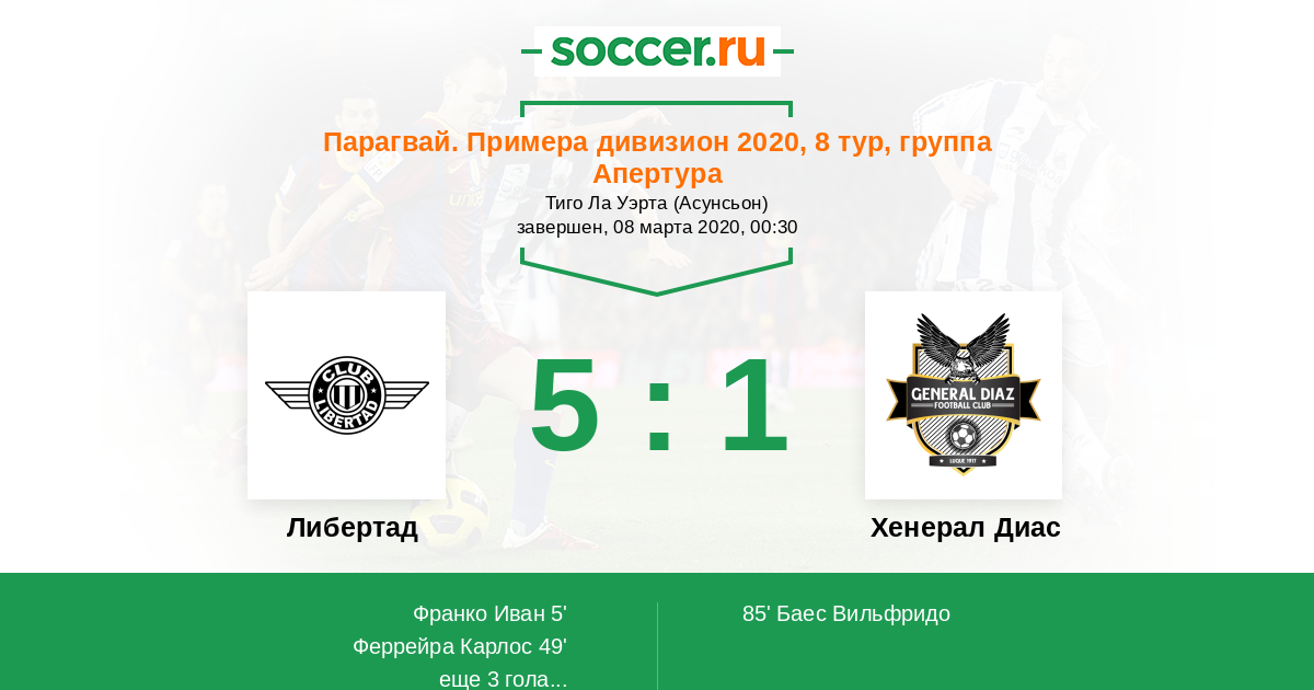 5' (1:0) Франко Иван (10) (Боканегра Даниэль (2))