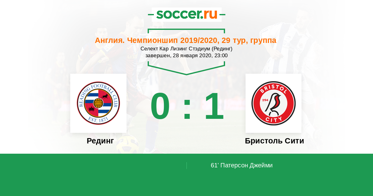 Протокол матча Рединг против Бристоль Сити