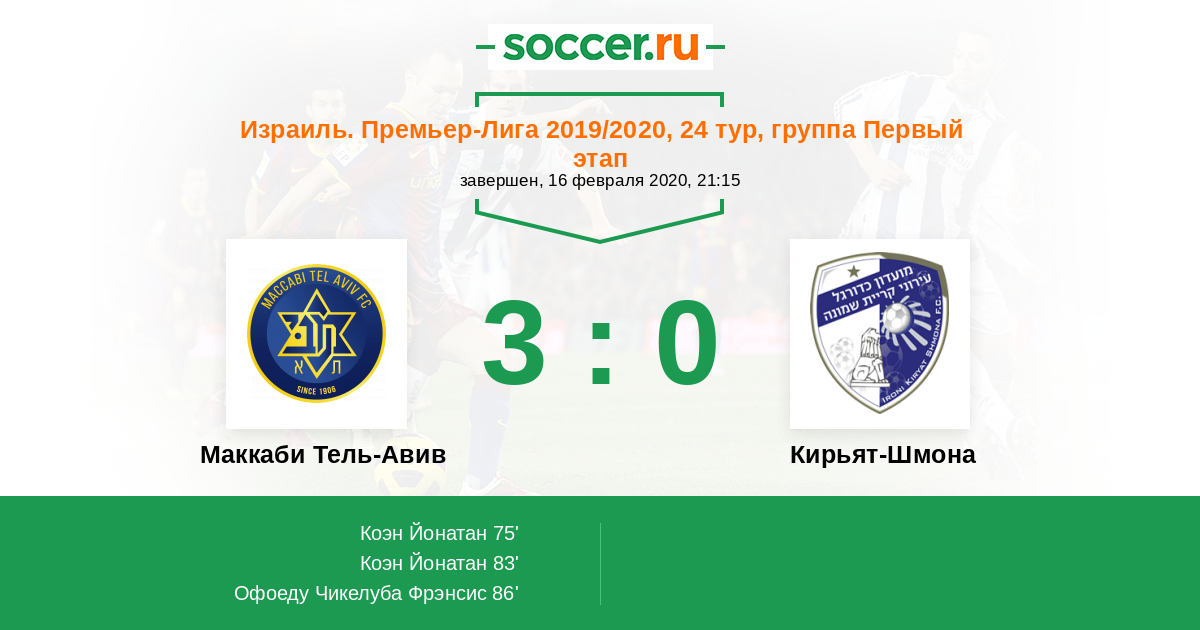 Протокол матча Маккаби Тель-Авив против Кирьят-Шмона