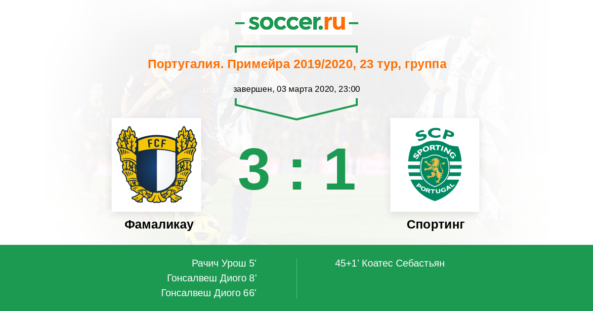 8' (2:0) Гонсалвеш Диого (17) (Мартинш Фабиу (11))