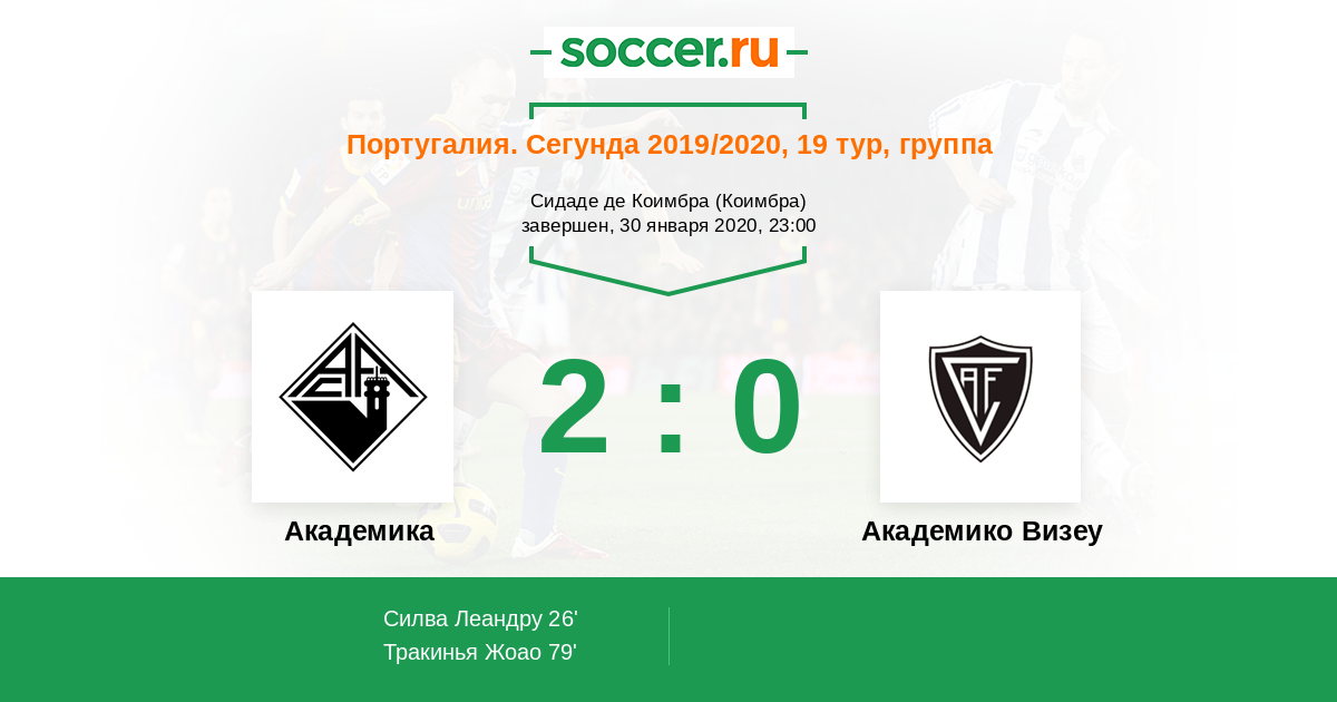 Протокол матча Академика против Академико Визеу