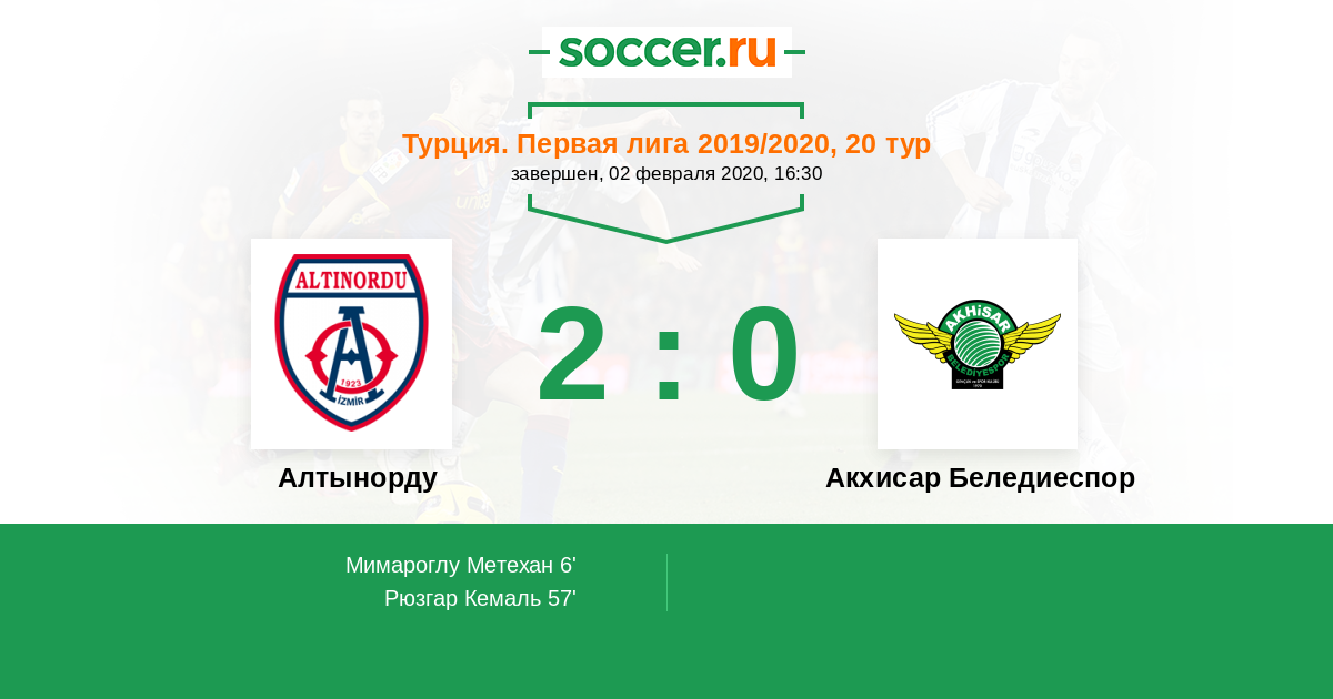 Протокол матча Алтынорду против Акхисар Беледиеспор