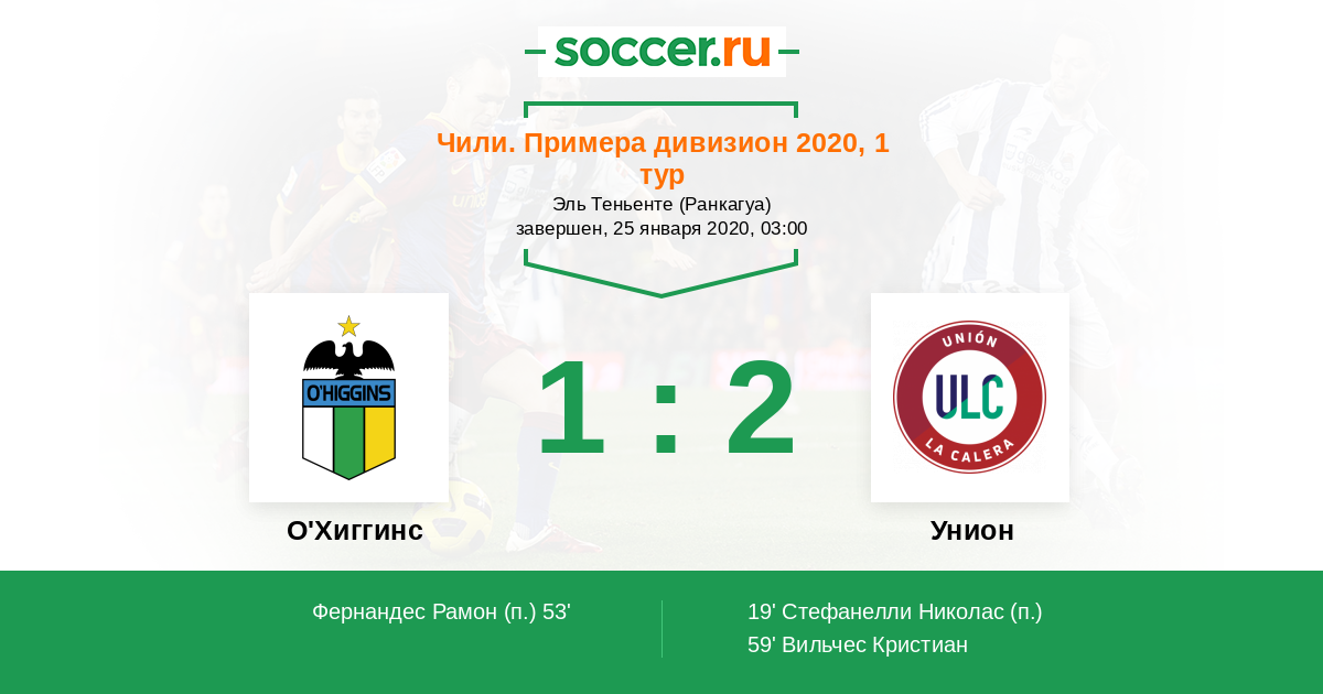 Протокол матча О'Хиггинс против Унион