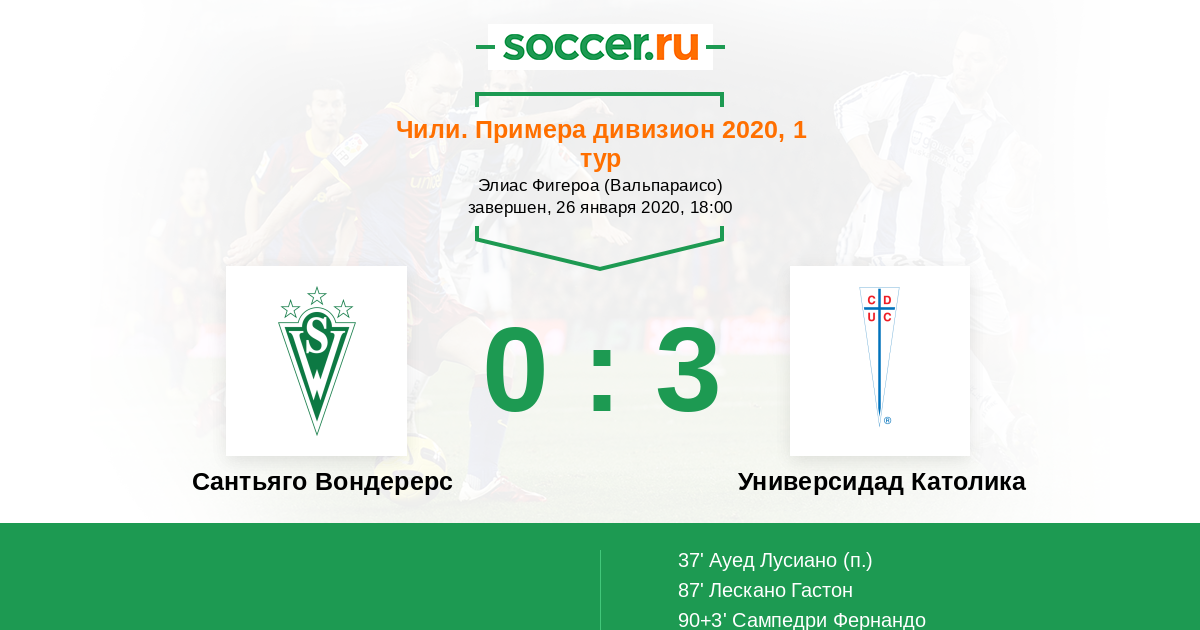 Протокол матча Сантьяго Вондерерс против Универсидад Католика