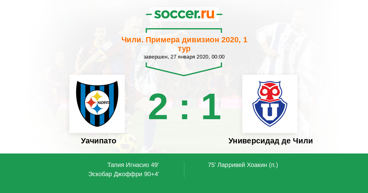 49' (1:0) Тапия Игнасио (3) (Кордова Хуан (11))