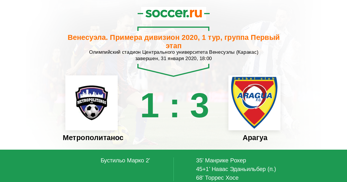 Протокол матча Метрополитанос против Арагуа