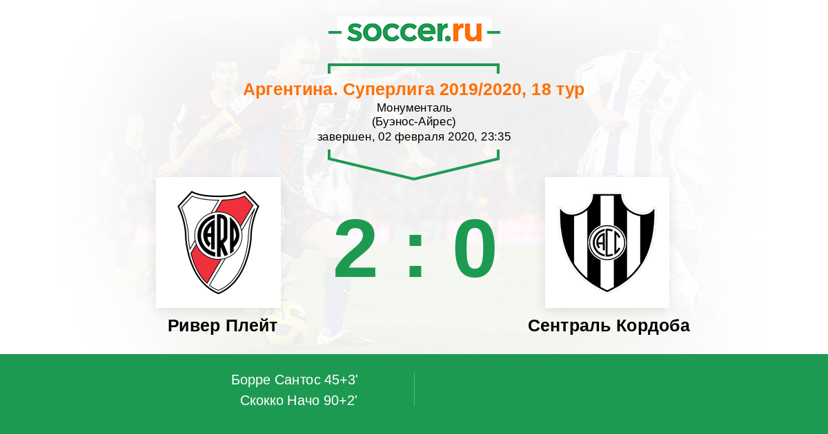 Протокол матча Ривер Плейт против Сентраль Кордоба