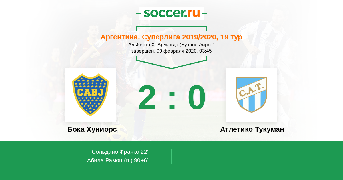 Протокол матча Бока Хуниорс против Атлетико Тукуман