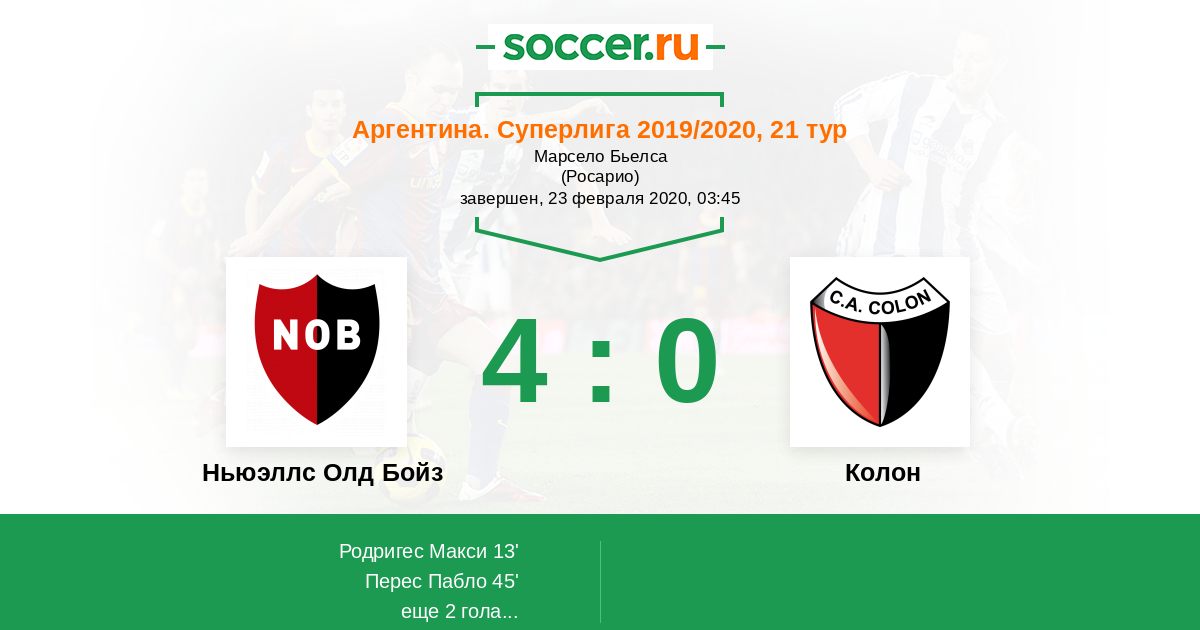 Протокол матча Ньюэллс Олд Бойз против Колон