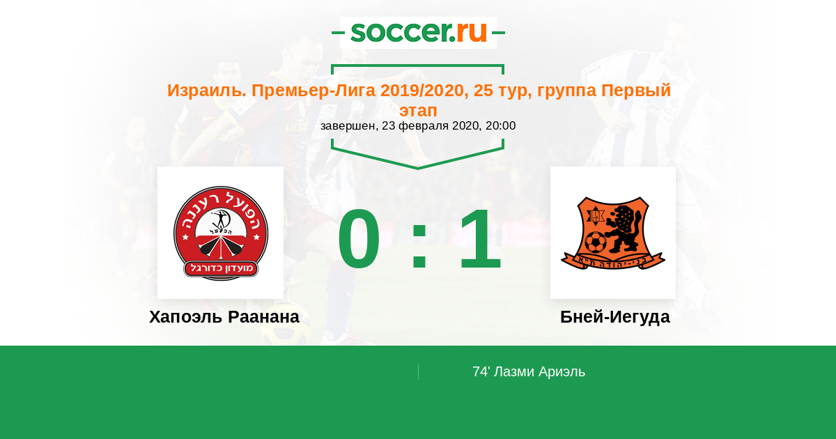 Протокол матча Хапоэль Раанана против Бней-Иегуда