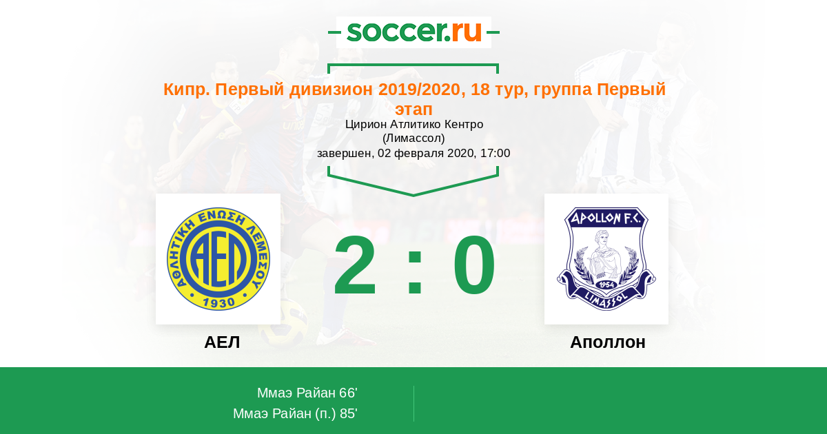 Протокол матча АЕЛ против Аполлон