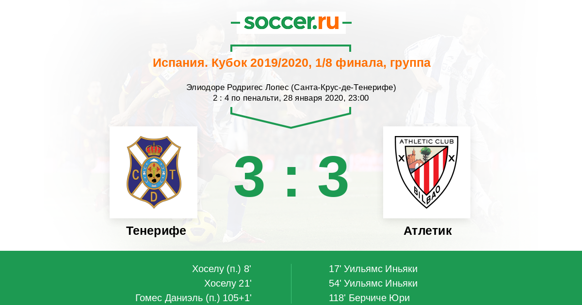 Протокол матча Тенерифе против Атлетик
