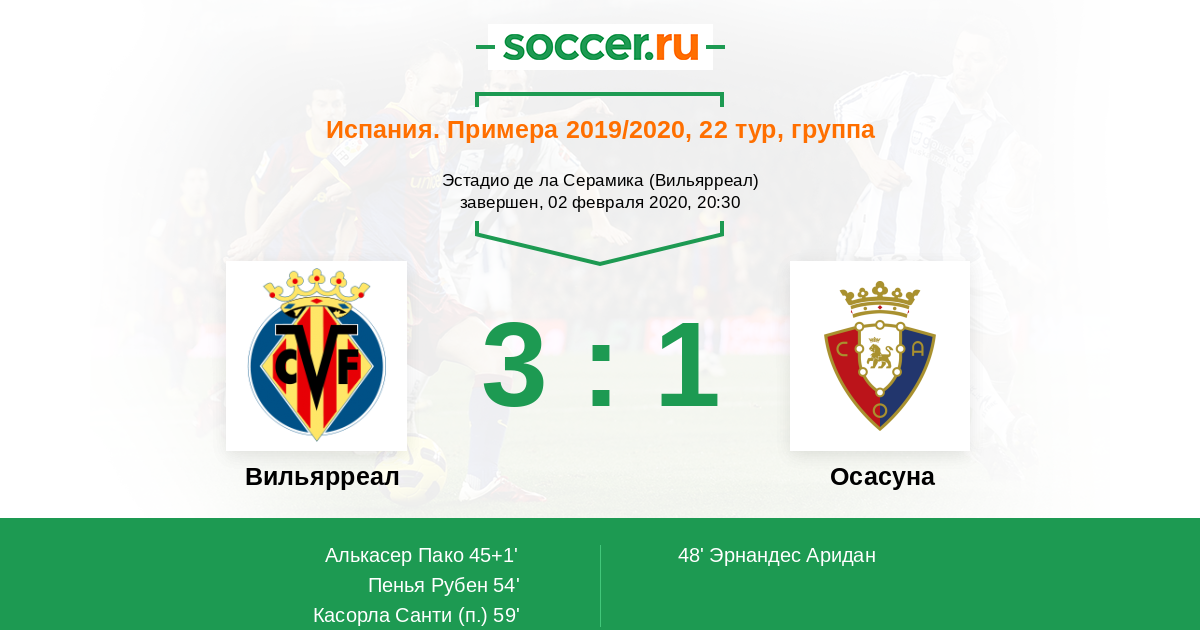 54' (2:1) Пенья Рубен (20) (Касорла Санти (8))