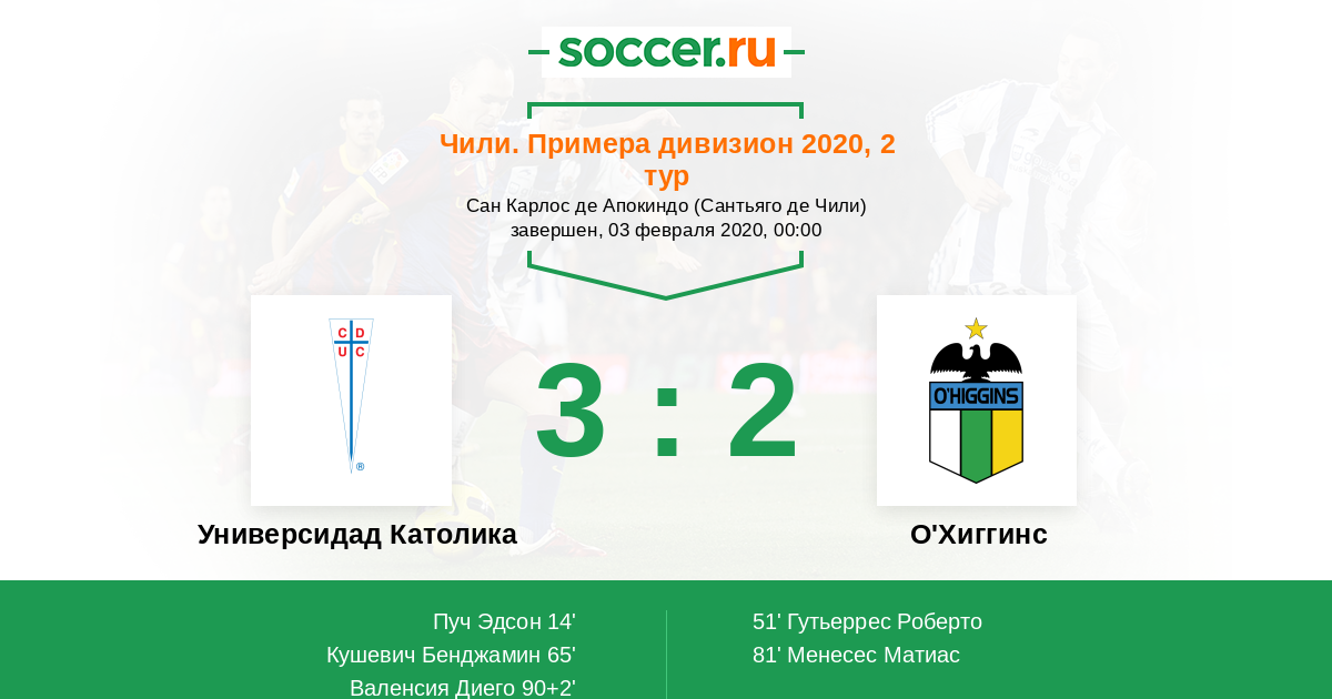 Протокол матча Универсидад Католика против О'Хиггинс