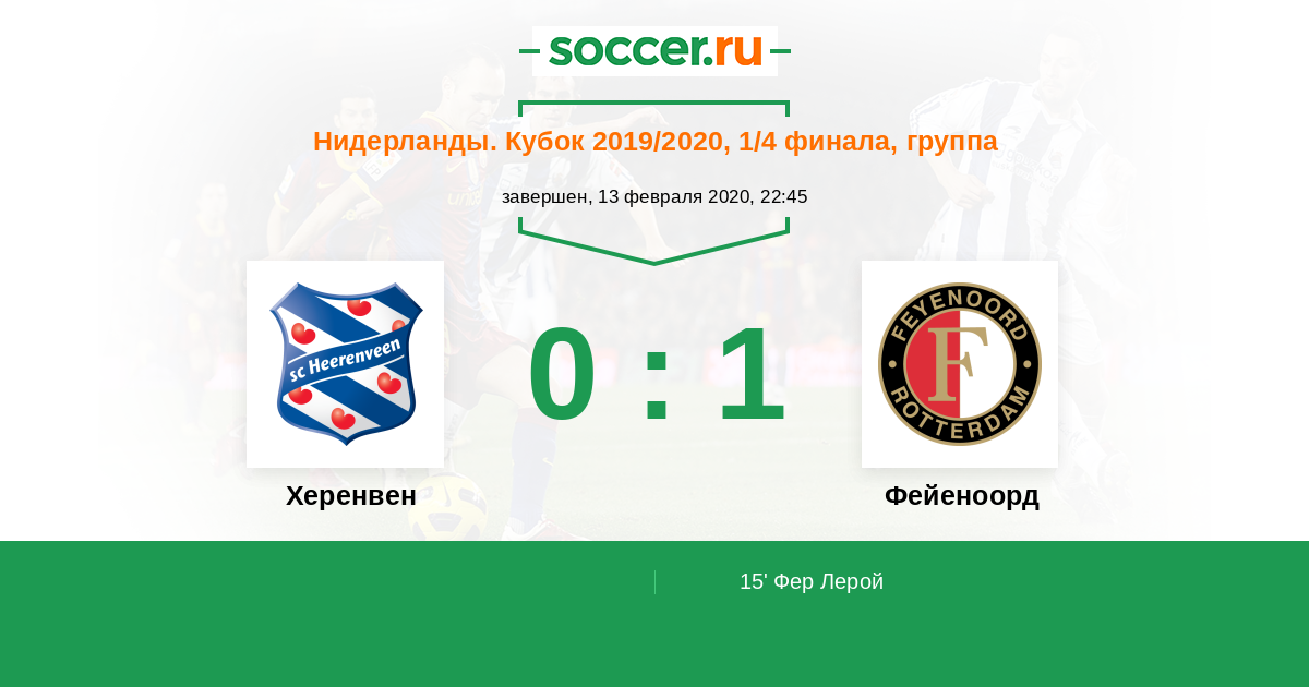 Протокол матча Херенвен против Фейеноорд