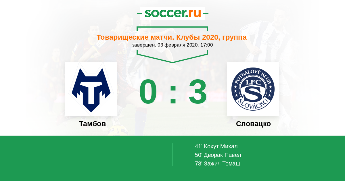 Протокол матча Тамбов против Словацко