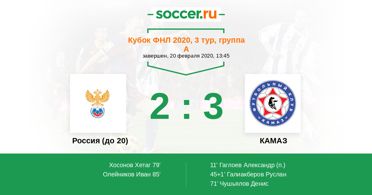 Протокол матча Россия (до 20) против КАМАЗ