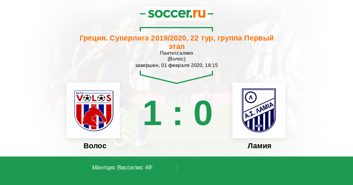 Протокол матча Волос против Ламия