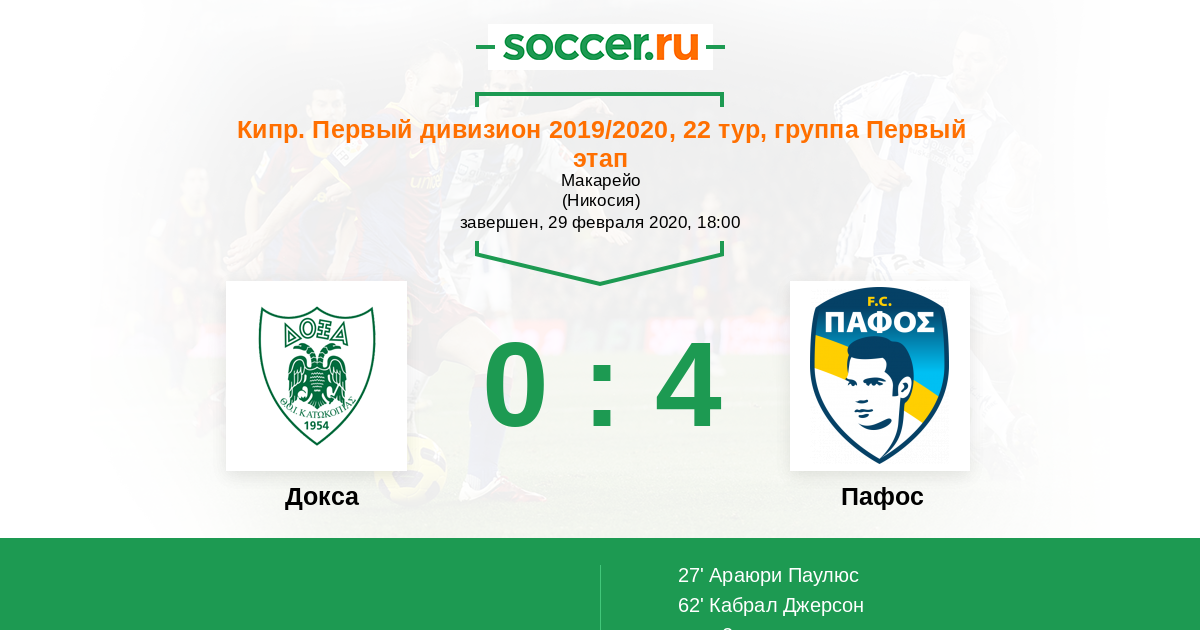 Протокол матча Докса против Пафос